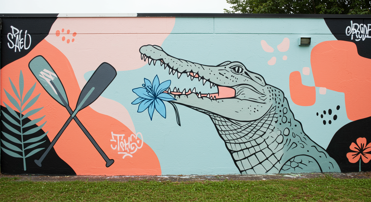 "The mural repeats the words ‘Tampa Bay’ in red and white, followed by street artist Bask’s directive to ‘Have a nice day.’ It helps set the mood for a winning weekend."